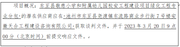 2、項(xiàng)目名稱:東至縣敬慈小學(xué)和附屬幼兒園校安工程建設(shè)項(xiàng)目綠化工程專業(yè)分包